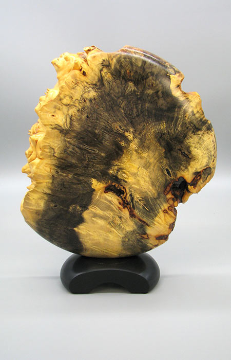 Buckeye burl is a very unique west coast burl which forms on the root system of the tree. The random color patterns that naturally occur along with the sculptural edges make this one of the most interesting burls that I work with. All of the circular vases listed here come with a glass vial to be used with live flowers. All other flower vases containing either a glass vial or metal cup will hold water. Flowers not included.